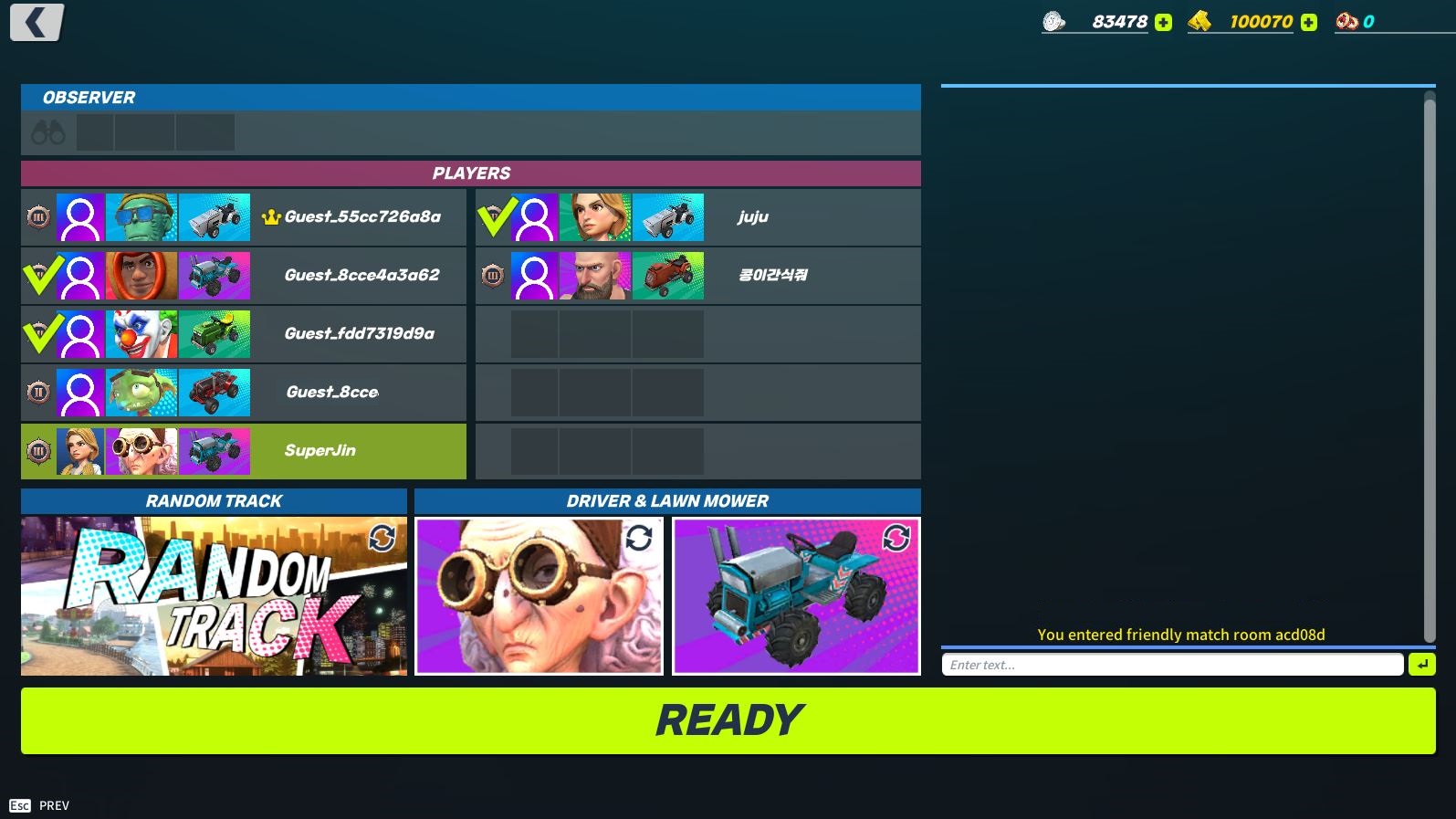 * Create a race by pressing the “Friendly Match” button, or join a race created by another player.