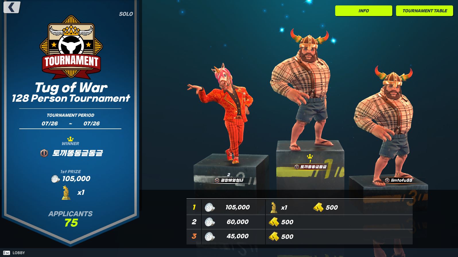<figure><img src="https://504197915-files.gitbook.io/~/files/v0/b/gitbook-x-prod.appspot.com/o/spaces%2FJ0d0DDYFyJ9koRJMqtm6%2Fuploads%2FRPfvwdP2B7T7wvbr61sz%2F%ED%86%A0%EB%84%88%EB%A8%BC%ED%8A%B8_29.JPG?alt=media&#x26;token=3b14a4d2-b0d1-410e-a9d7-099879b493b1" alt=""><figcaption><p>Tournament Table</p></figcaption></figure>