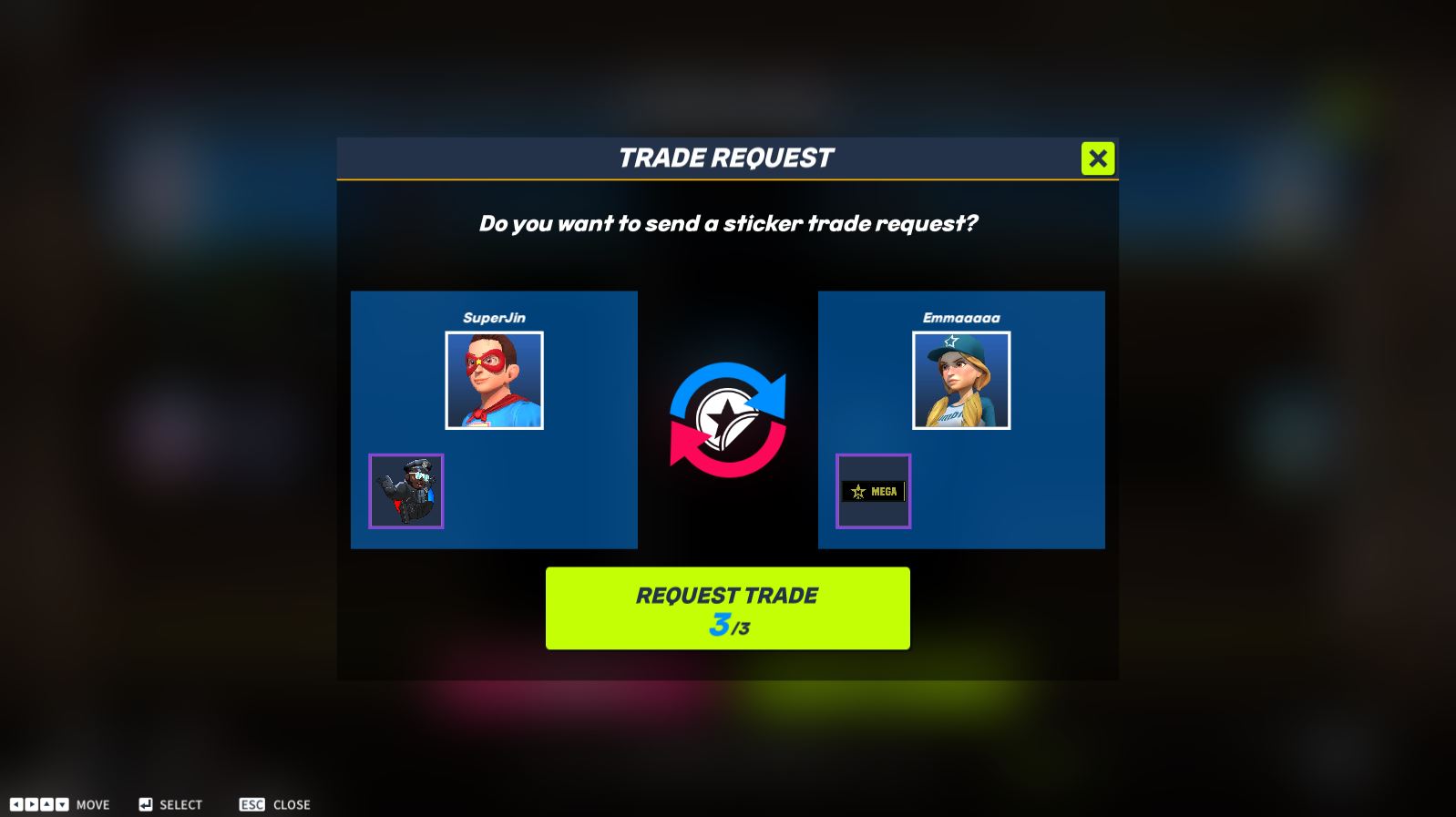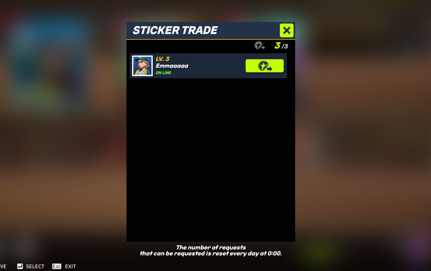 * Additional duplicate stickers can be exchanged with friends or club members. A sticker exchange request can be sent by selecting the player’s and the other party’s sticker. If the other party accepts the request, the exchange is completed.