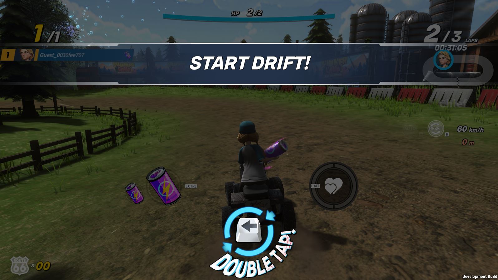 Drift starts when "Left" or "Right" is double-tapped during a turn.